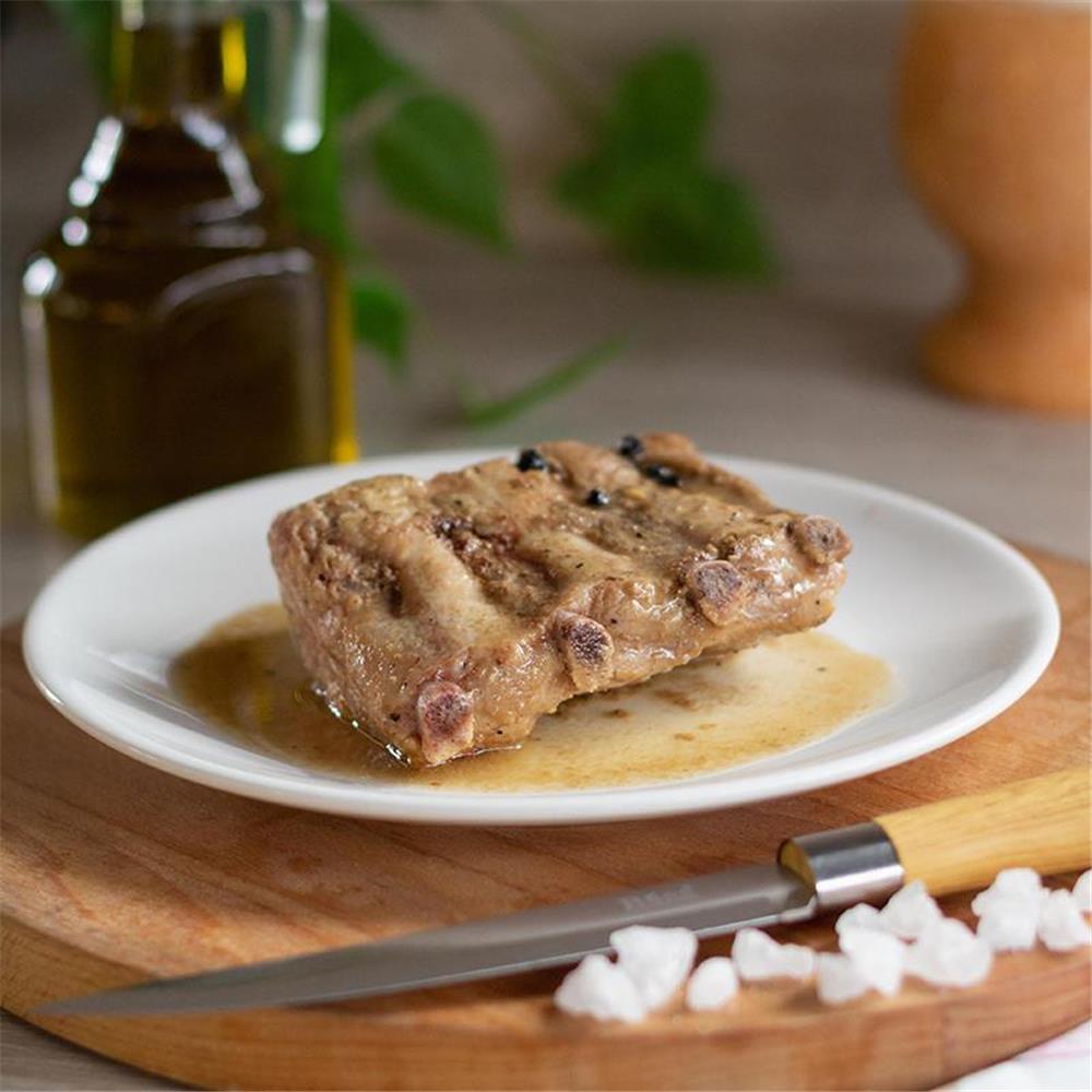 Descripción: Tierna costilla de cerdo asada y cocinada a baja temperatura lista para servir y acompañar con la guarnición que gustes de nuestra gama de productos. (Foto referencial, no incluye acompañamiento)