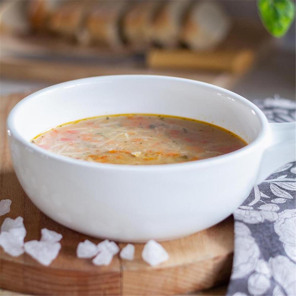 Descripción: Intenso caldo de ave servido con vegetales y trozos de pechuga de pollo aromatizado con el sazón clásico de un consome dominical.